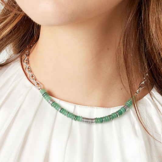 Collar acero cuentas colorido verde