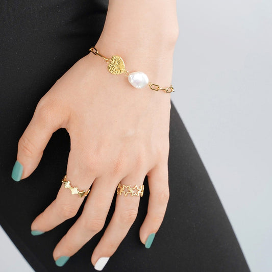Pulsera acero corazón y perla plata