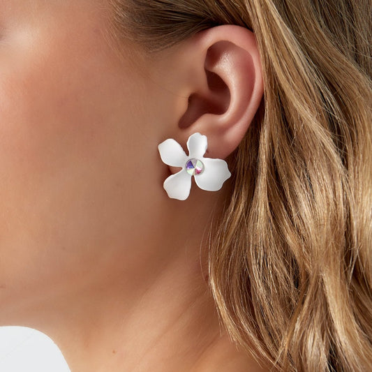 Pendientes cortos blancos flor y brillante