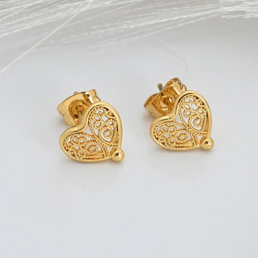 Pendientes pequeños de corazón con diseño de filigrana.