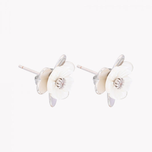 Pendiente de botón en plata S925 en forma de flor con circonitas acabado plata - mbyou