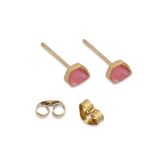 Pendientes cortos de acero inoxidable quirúrgico forma geométrica con piedra fucsia acabado oro - mbyou