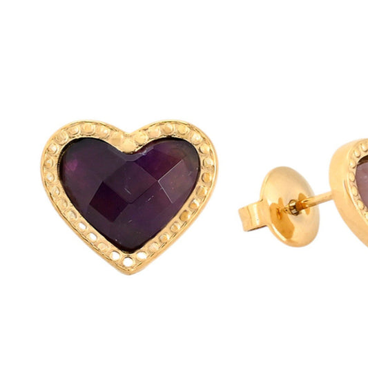 Pendientes acero inoxidable con forma de corazón y piedra natural de color morada acabado oro - mbyou