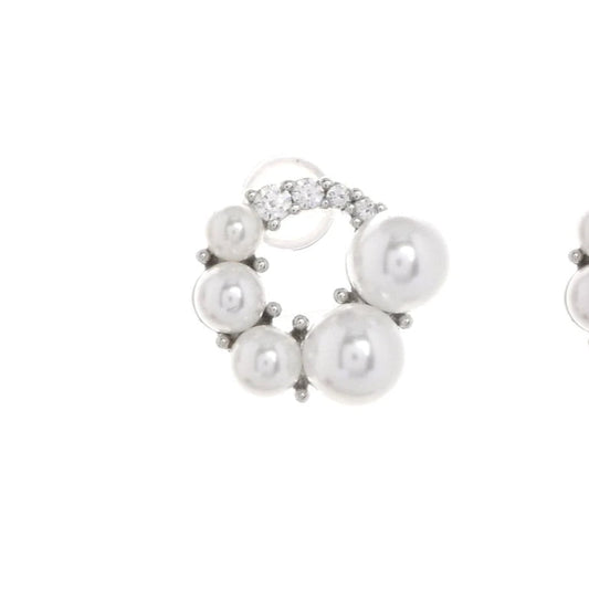 Pendientes acero inoxidable redondos con circonitas y perlas acabado plata - mbyou
