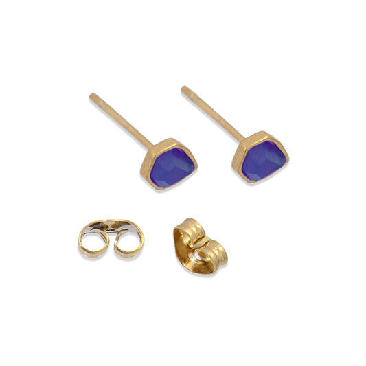 Pendiente corto de acero quirúrgico en forma de lágrima con una piedra de cristal en color azul acabado oro - mbyou