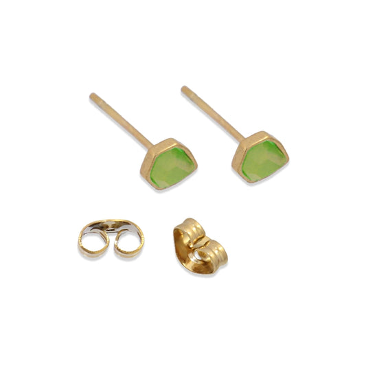Pendiente corto de acero quirúrgico en forma de lágrima con una piedra de cristal en color verde lima acabado oro - mbyou