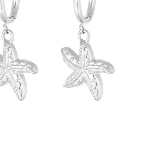 Pendientes de acero inoxidable aro en forma de estrella de mar en acabado plata - mbyou