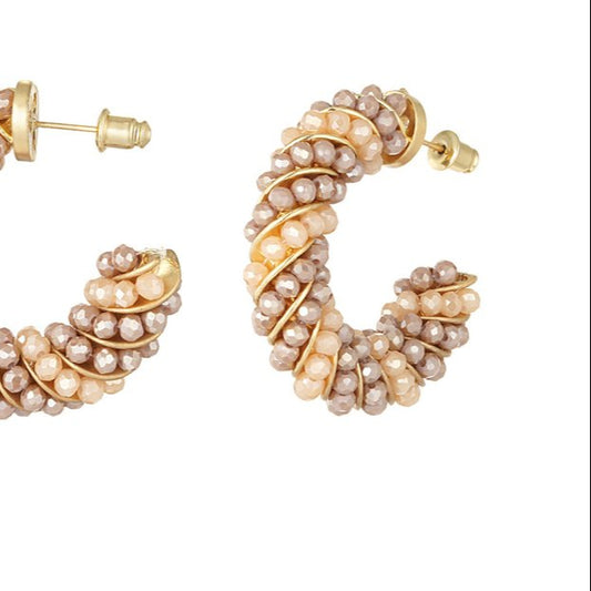 Pendientes de cobre en forma de aro con brillitos beige en diferentes tonos acabado oro - mbyou