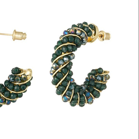 Pendientes de metal con cristales en color verde y un aro con acabado mate plata - mbyou