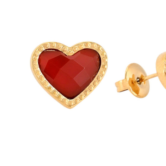 Pendientes acero inoxidable con forma de corazón y piedra natural de color rojo acabado oro - mbyou