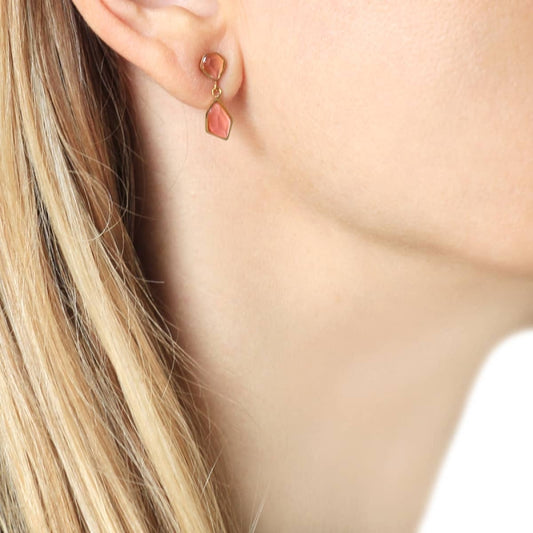 Pendiente de acero quirúrgico en forma geométrica con piedras de cristal en color beige acabado oro - mbyou