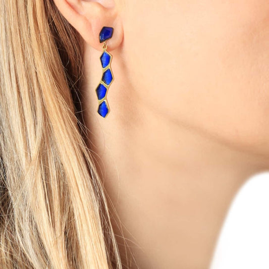 Pendientes de acero quirúrgico largos con drusas en color azul rey acabado oro - mbyou