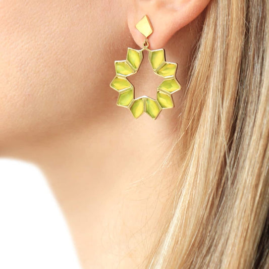 Pendientes de acero inoxidable quirúrgico forma de lágrima geométrica con piedra verde acabado oro - mbyou
