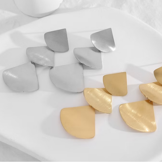 Pendientes de acero largos pulidos mate con 3 alturas acabado plata