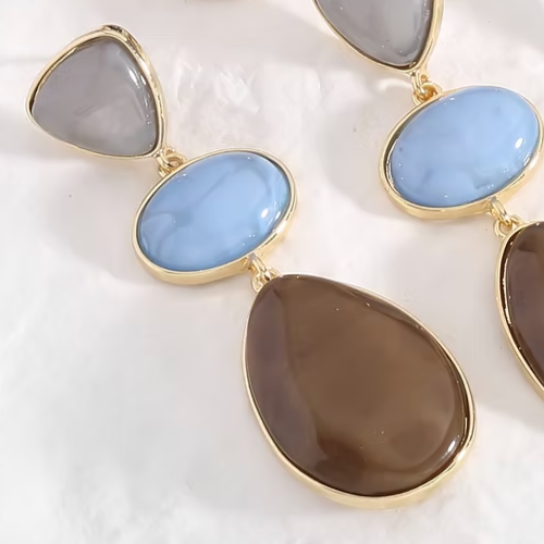 Pendientes largos con piedras de colores gris, azul y marrón chocolate