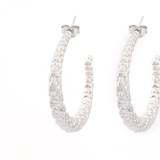 Pendientes aro de acero inoxidable con textura gruesos acabado plata - mbyou