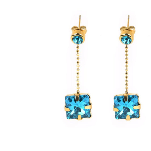 Pendientes de acero inoxidable con piedra cuadrada color turquesa acabado oro - mbyou