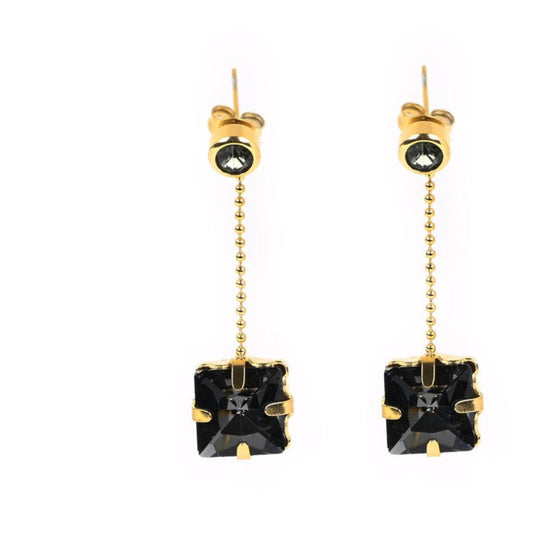 Pendientes de acero inoxidable con piedra cuadrada color negra acabado oro - mbyou