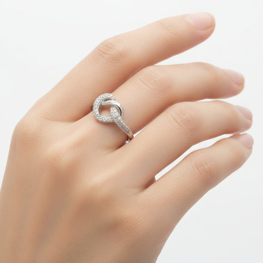 Anillo de plata S925 en forma de corazón entrelazado y circonitas