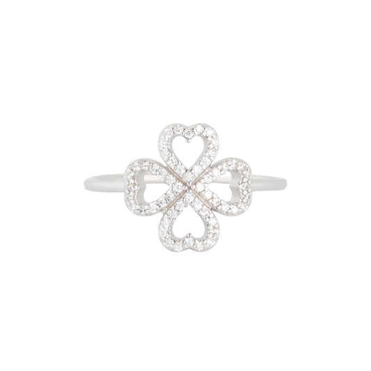 Anillo de plata S925 en forma de trébol con circonitas