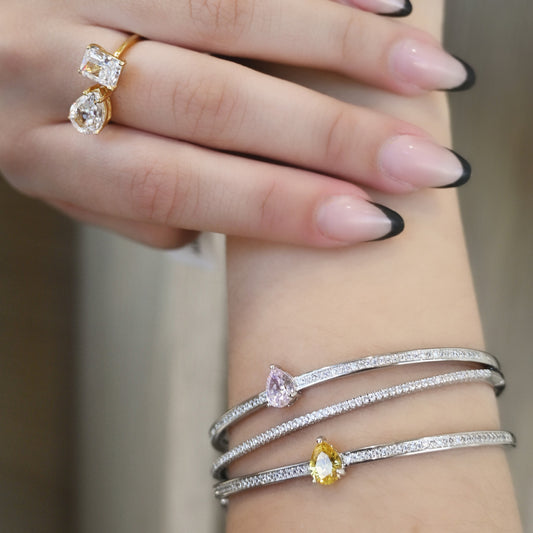 Pulsera rígida semijoya con circonitas y piedra oval amarilla