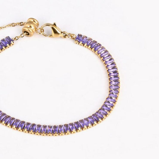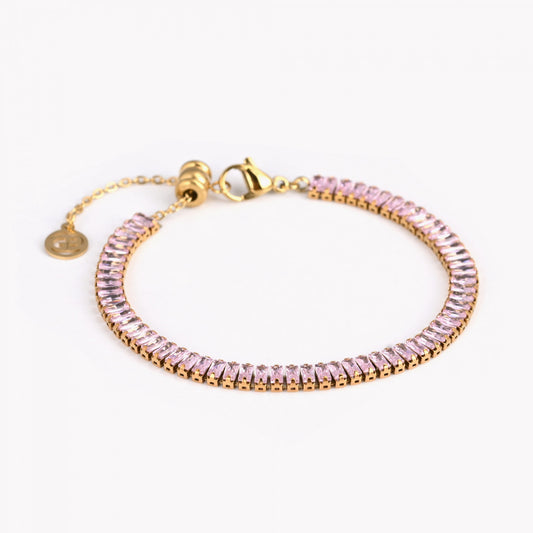 Pulsera de acero riviera cristales baguette malva acabado oro