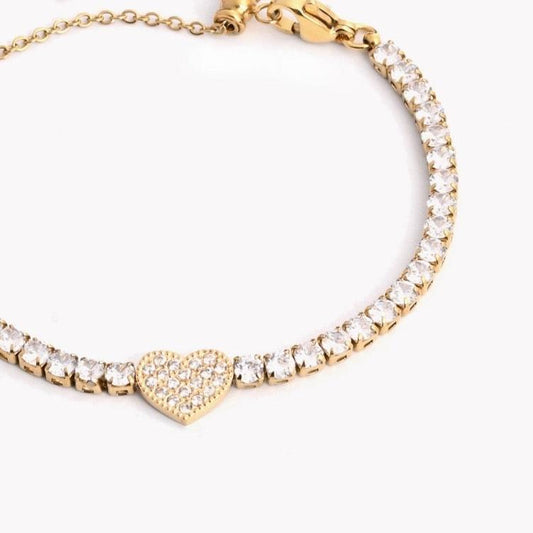 Pulsera de acero riviera con corazón brillante acabado oro
