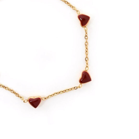 Pulsera de acero inoxidable con corazones rojos esmaltados acabado oro - mbyou