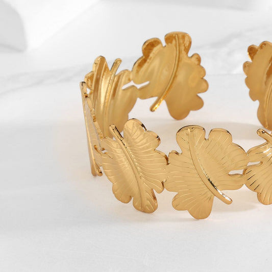 Brazalete de acero inoxidable ajustable con hojas acabado oro - mbyou