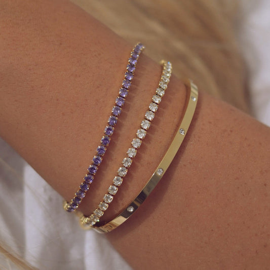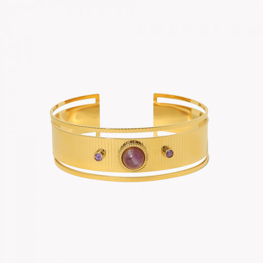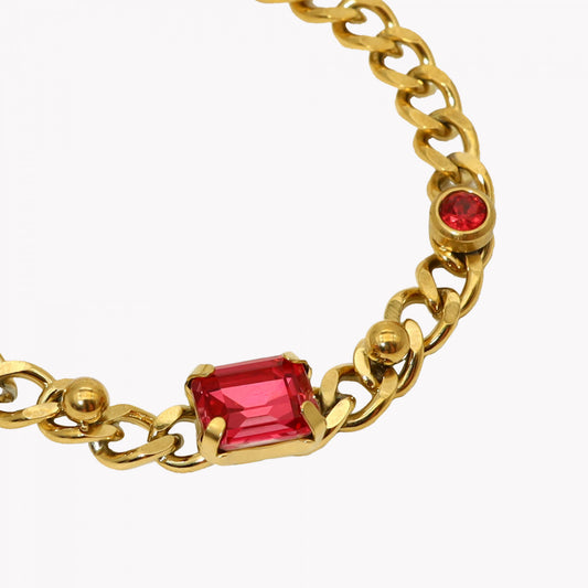 Pulsera en acero enlaces pedrería rosa oscuro oro