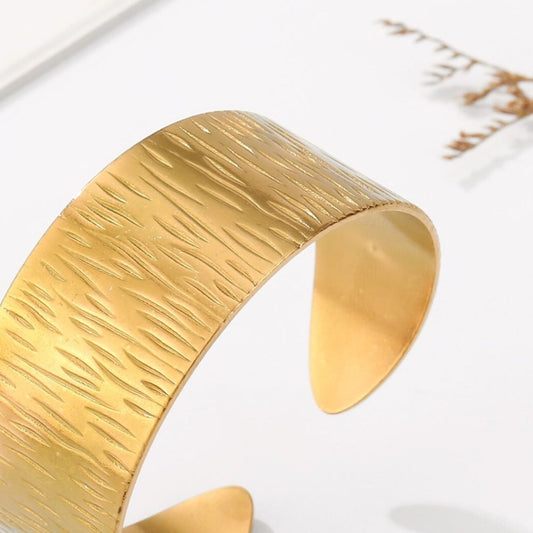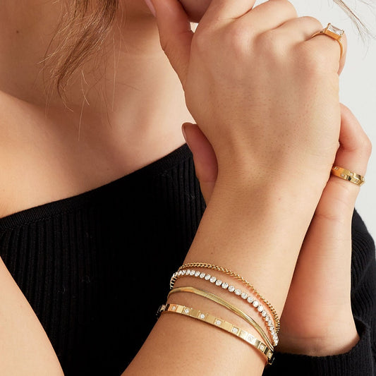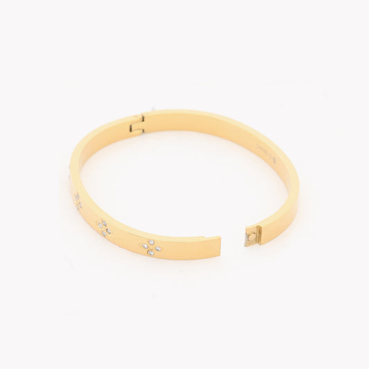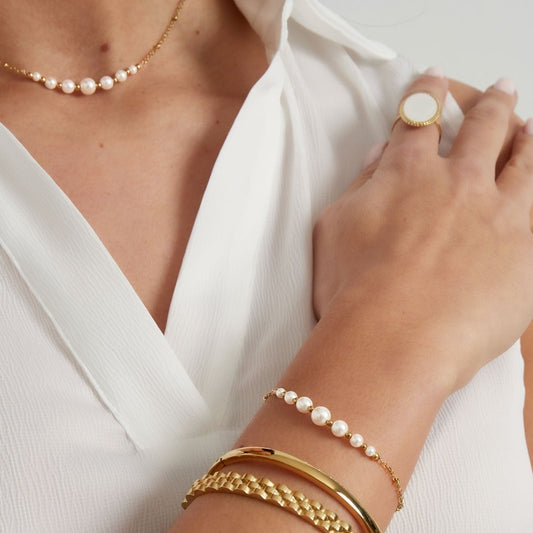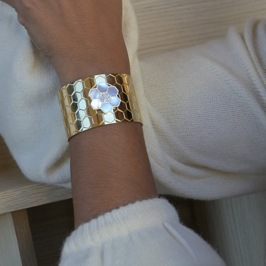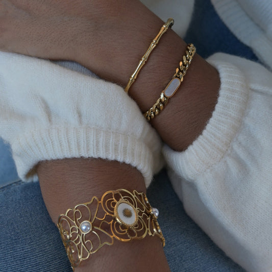 Pulsera en acero enlaces rectangular oro y piedra de nácar
