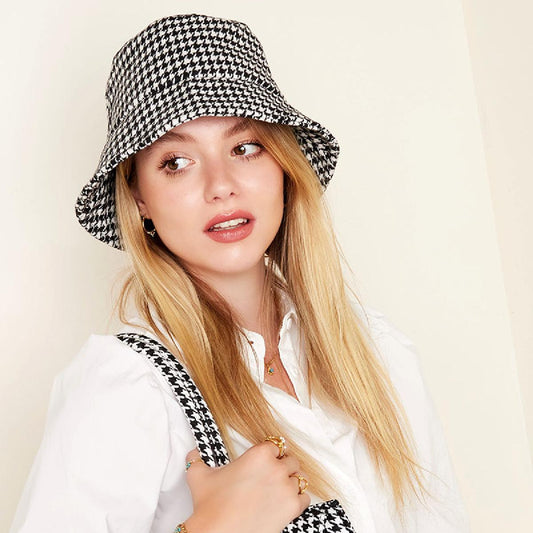 Sombrero de pescador a cuadros beige y chocolate talla ajustable
