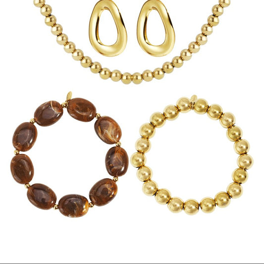 Calendario de adviento Navidad con joyas de acero inoxidable y piedras marrones con acabado oro - mbyou