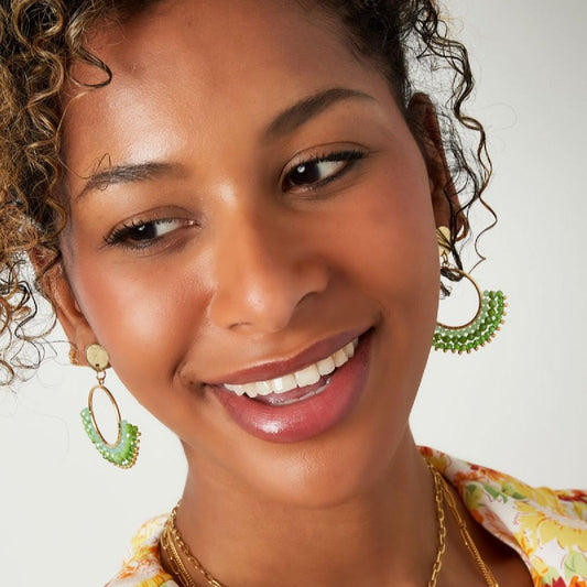 Pendientes de metal con cristales en color verde y un aro con acabado mate plata - mbyou