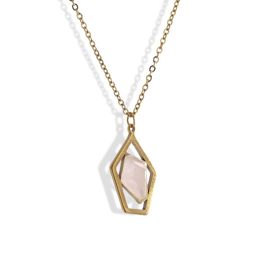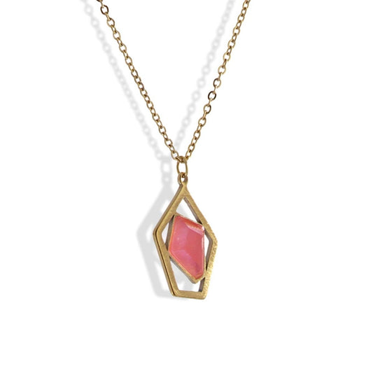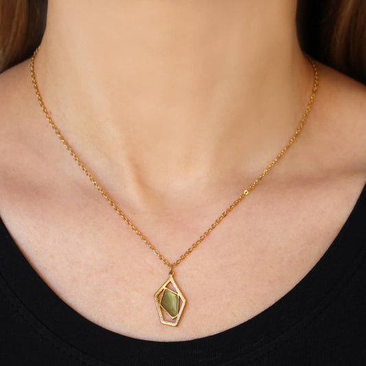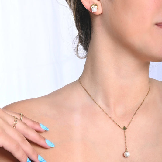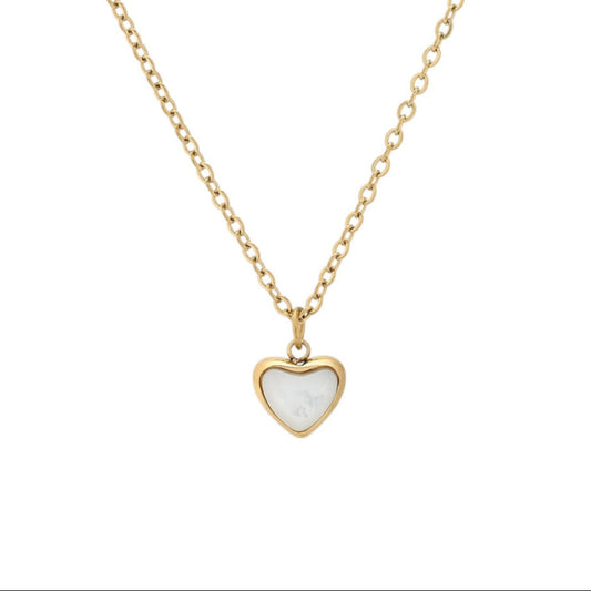 Collar de acero inoxidable con un dije de corazón con piedra de nácar en color blanco y acabado oro- mbyou