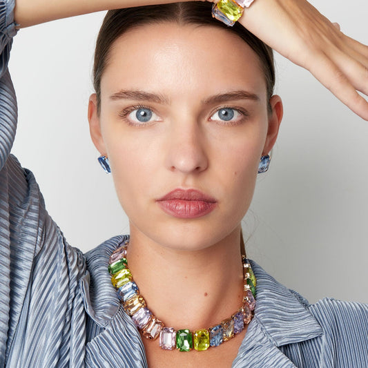 Steel necklace with green balls