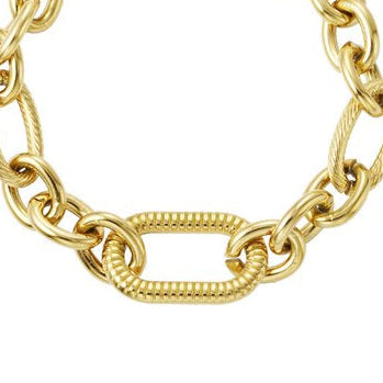 Pulsera de acero de eslabones con texturas y tamaños diferentes acabado oro