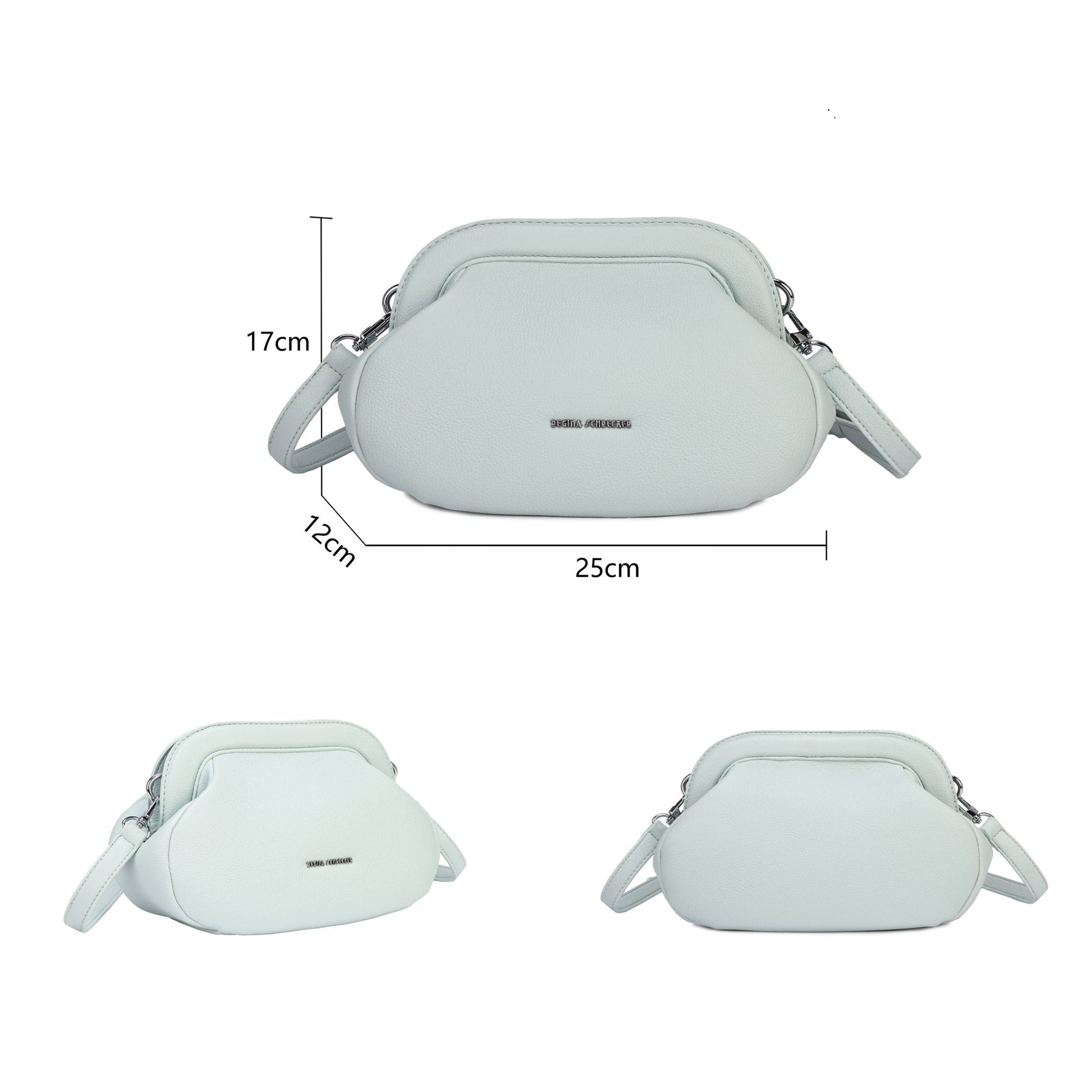 Handbag with velvety orange fabric. Click closure on flap. Golden chain to carry it as a shoulder bag.