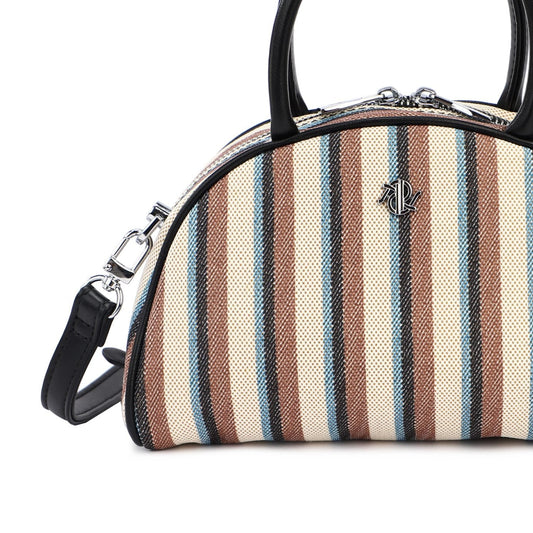 Bolso de mano pequeño con asa y rayas con azul