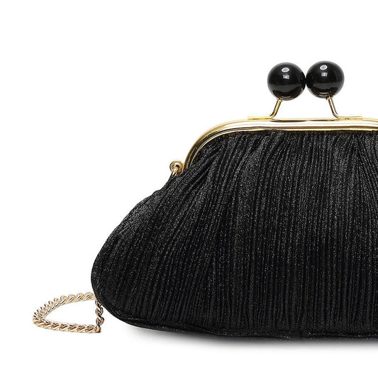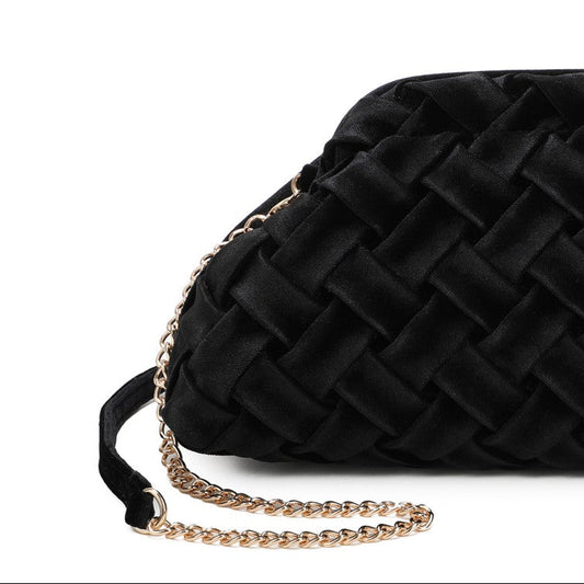Sac à main pochette de soirée en satin noir avec bretelles croisées