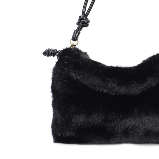 Bolso de hombro y bandolera tipo saco con pelo en color negro - mbyou