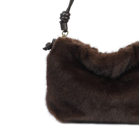 Bolso de hombro y bandolera en formato saco con pelo en color marrón chocolate - mbyou