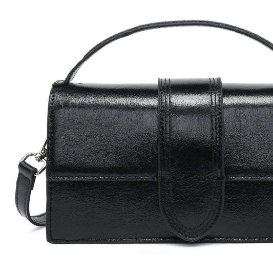 Sac à main pochette de soirée en satin noir avec bretelles croisées