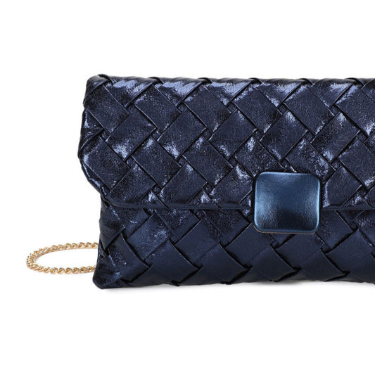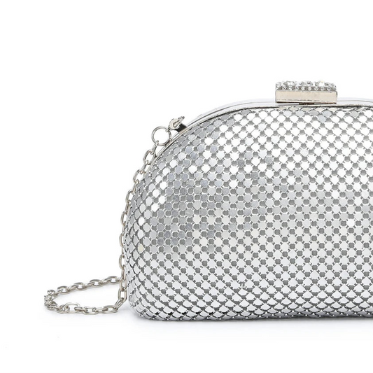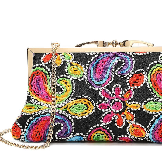 Sac à main pochette de soirée en satin noir avec bretelles croisées