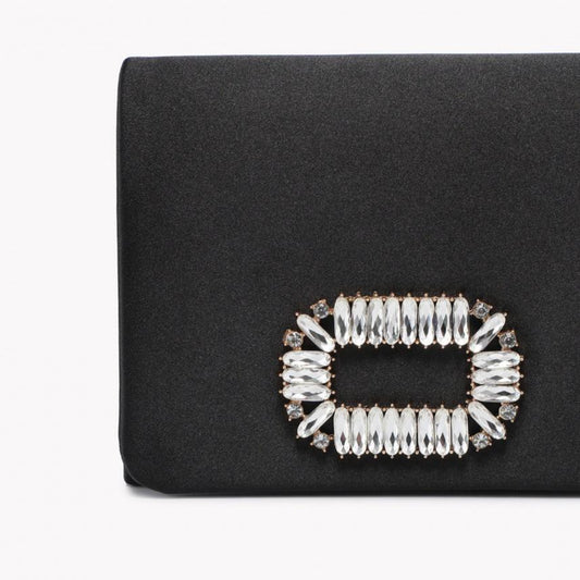 Sac à main pochette de soirée en satin noir avec bretelles croisées