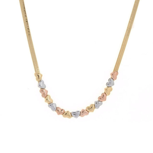 • Collar de acero inoxidable con colgante de corazón y con circonita acabado oro- mbyou