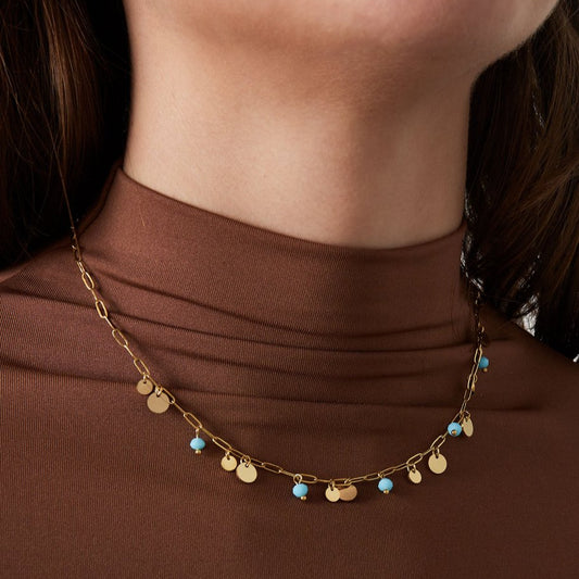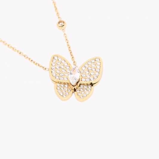 Collar de acero inoxidable con forma de cola de ballena con circonitas y acabado oro - mbyou