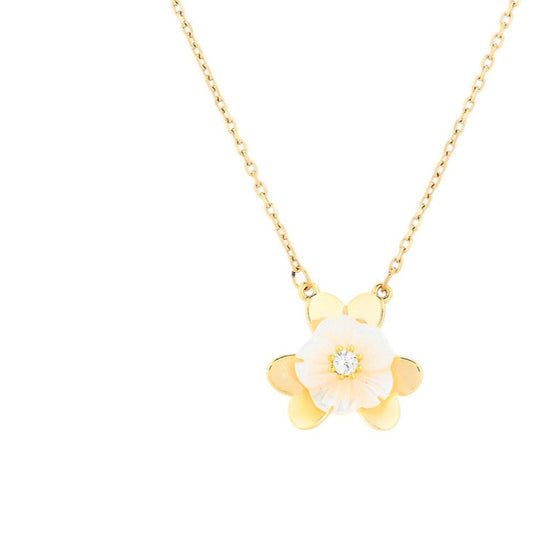 Collar de acero inoxidable con un dije de corazón con piedra de nácar en color blanco y acabado oro- mbyou