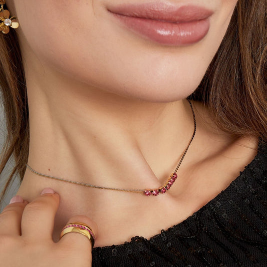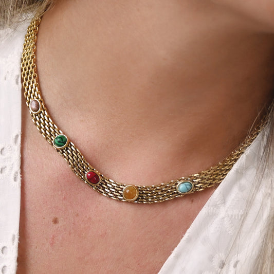 Collier en acier avec boules vertes