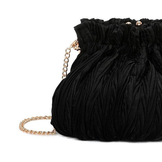 Sac à main pochette de soirée en satin noir avec bretelles croisées